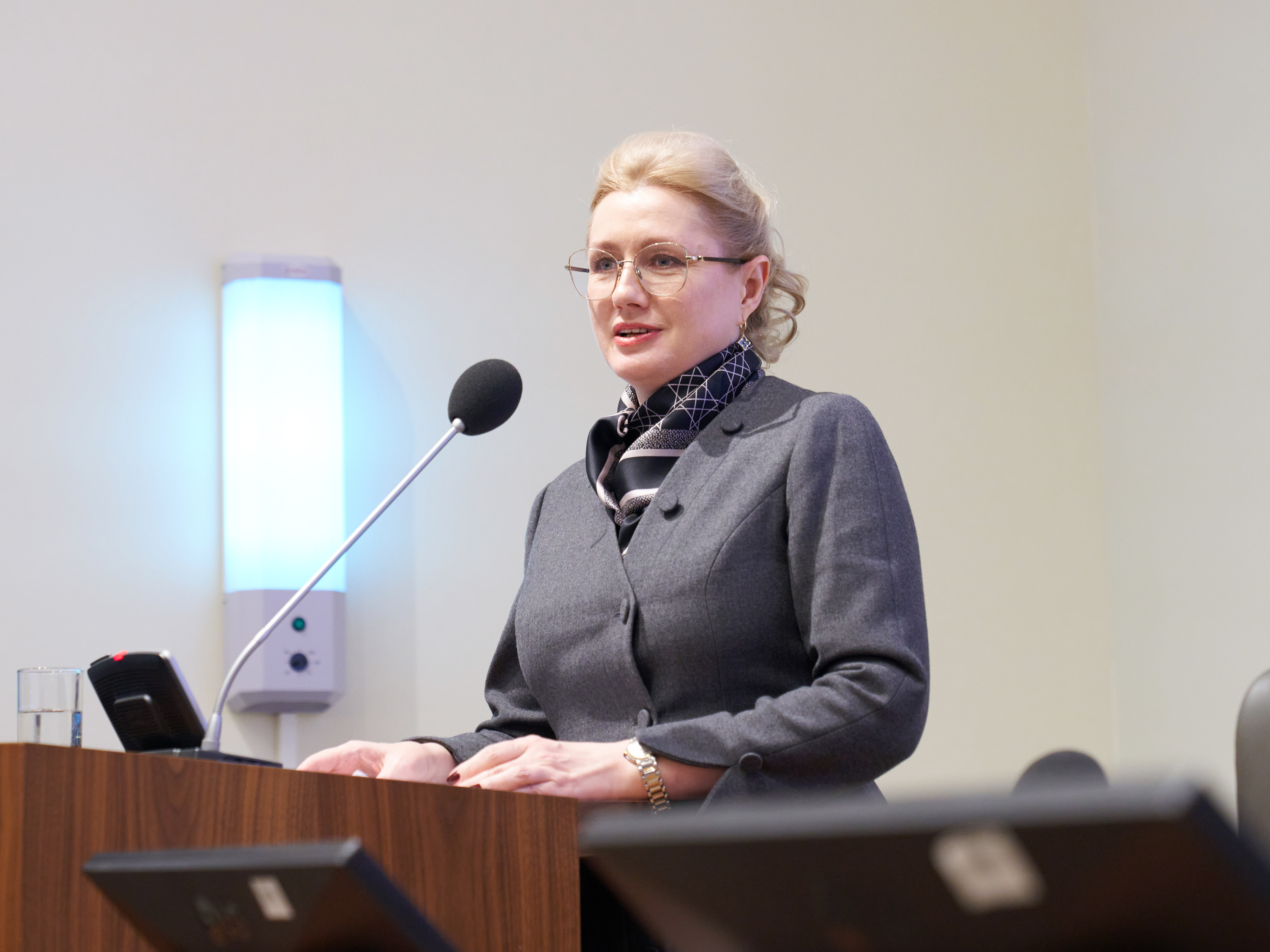 Заведующий кафедрой гражданского процесса Уральского государственного юридического университета имени В. Ф. Яковлева Владимир Ярков затронул тему корпоративного самоуправления в нотариате. Исполняющий обязанности начальника Управления организации надзорной деятельности Росфинмониторинга Ольга Шоломицкая говорила о роли нотариата в экономической безопасности страны.